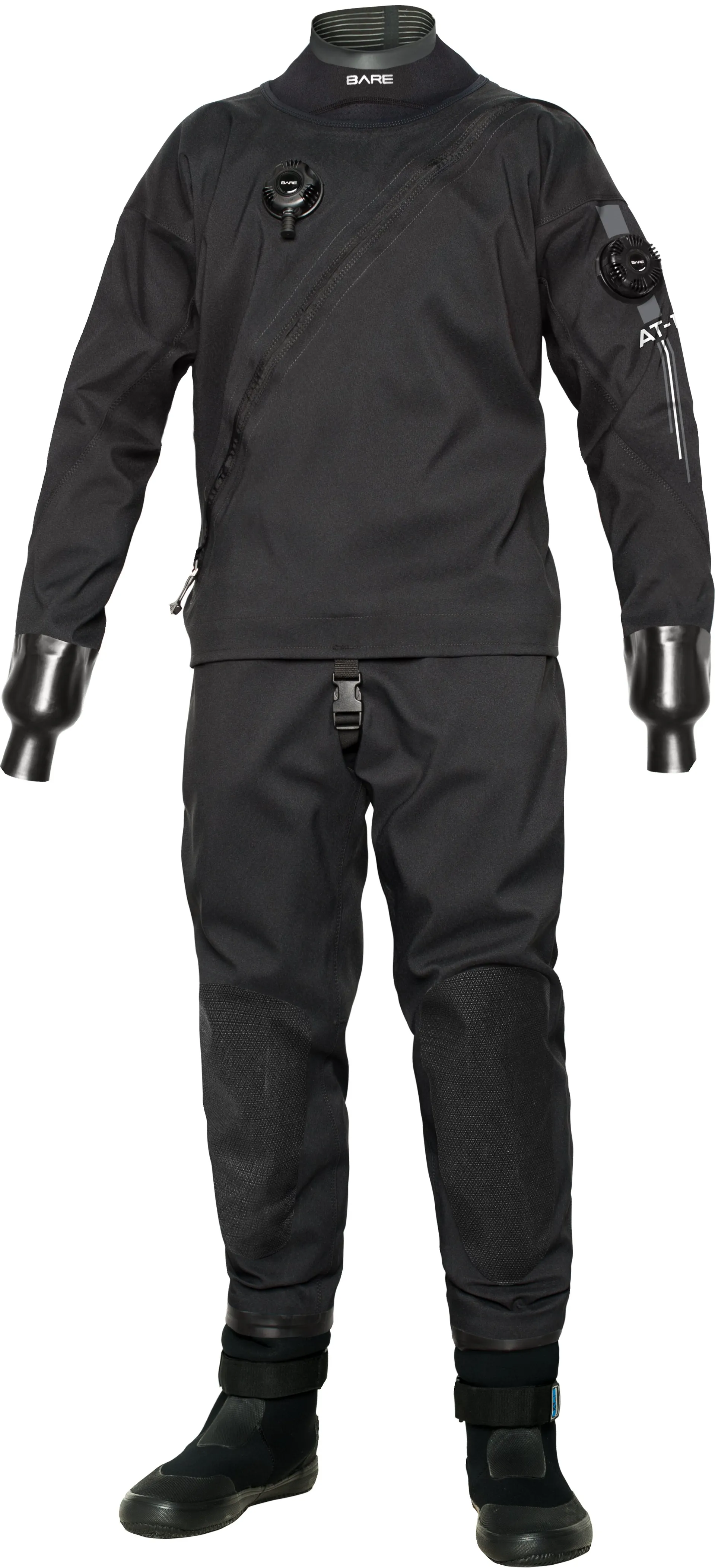 De 2 mm warme kraag van nylon en smoothskin sluit comfortabel aan rond de nek en de ventilatieopening helpt condens te verminderen en zorgt voor een betere afdichting in combinatie met een Bare cap. De low profile kunststof droogrits houdt het pak licht en soepel terwijl hij toch de betrouwbaarheid biedt die je van een technisch droogpak mag verwachten.