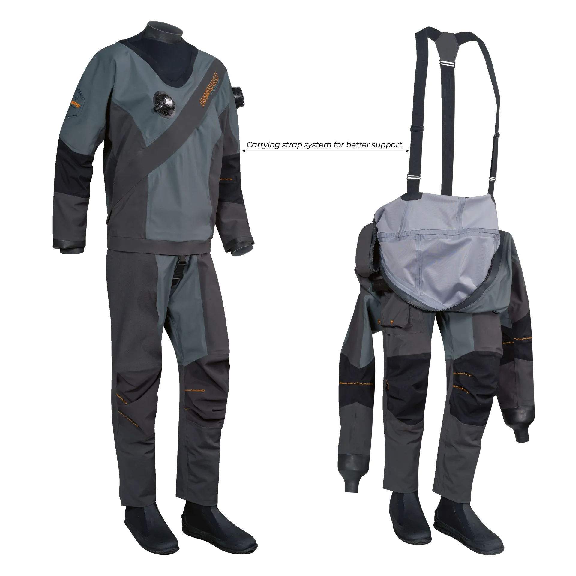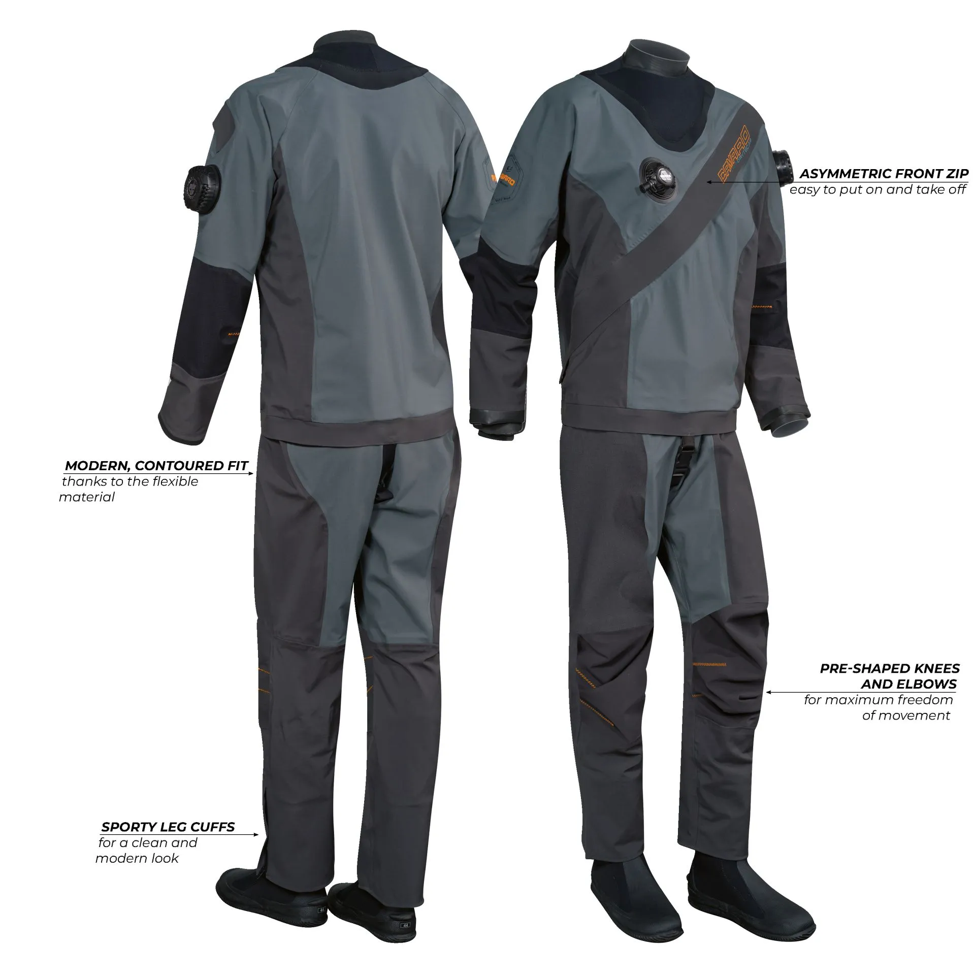 De waterdichte front-entry rits maakt het mogelijk om het pak zelfstandig aan en uit te trekken. Het automatische inflatieventiel op de borst en het instelbare dumpventiel op de schouder zorgen ervoor dat je eenvoudig je drijfvermogen kunt regelen tijdens de duik.
